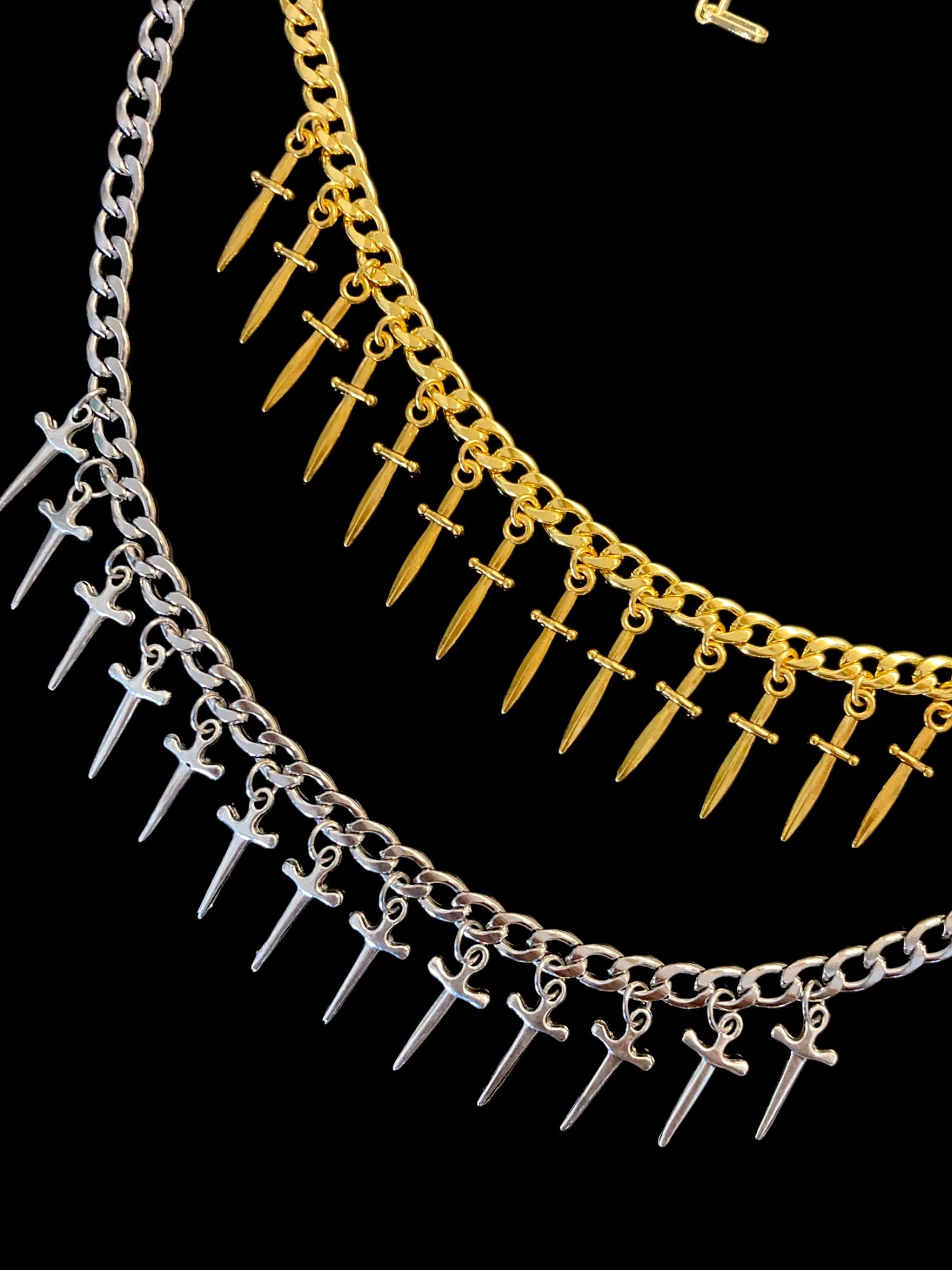 13 mini daggers adorn a stainless chain