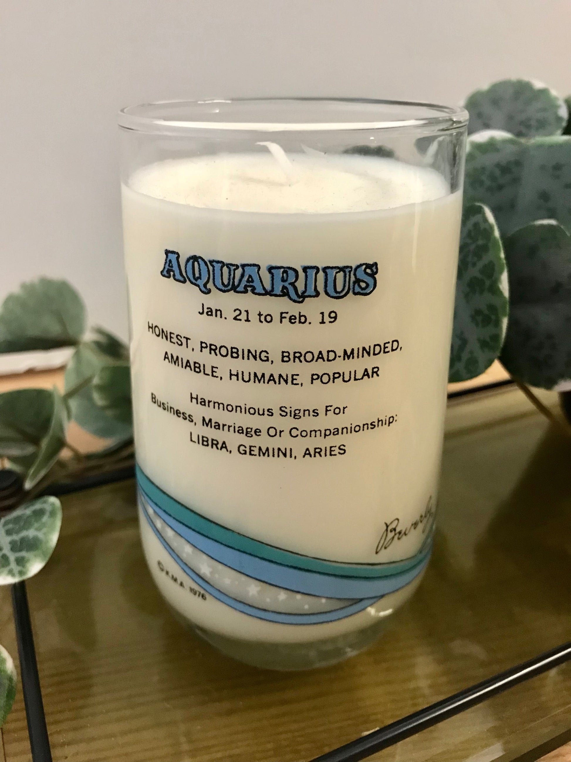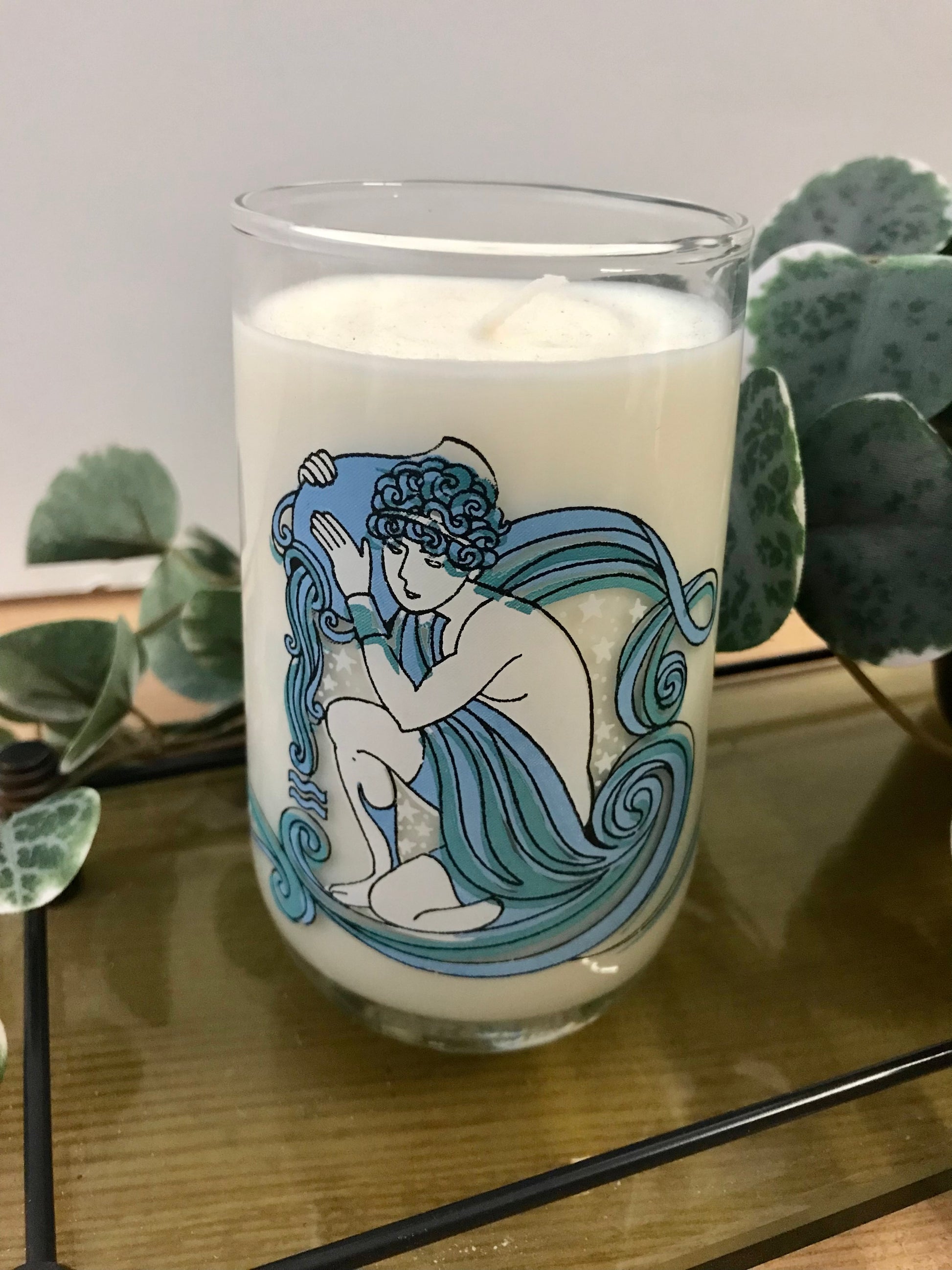 Aquarius retro short glass candle