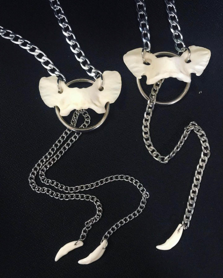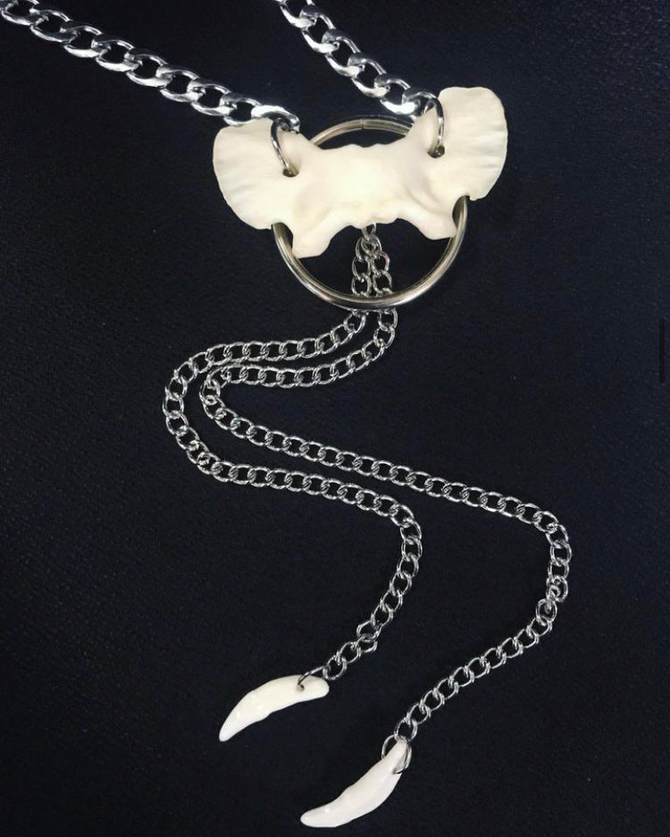 silvertone curb chain and sterm o-ring adorned with coyote atlas vertebrae and one (or two!) teeth