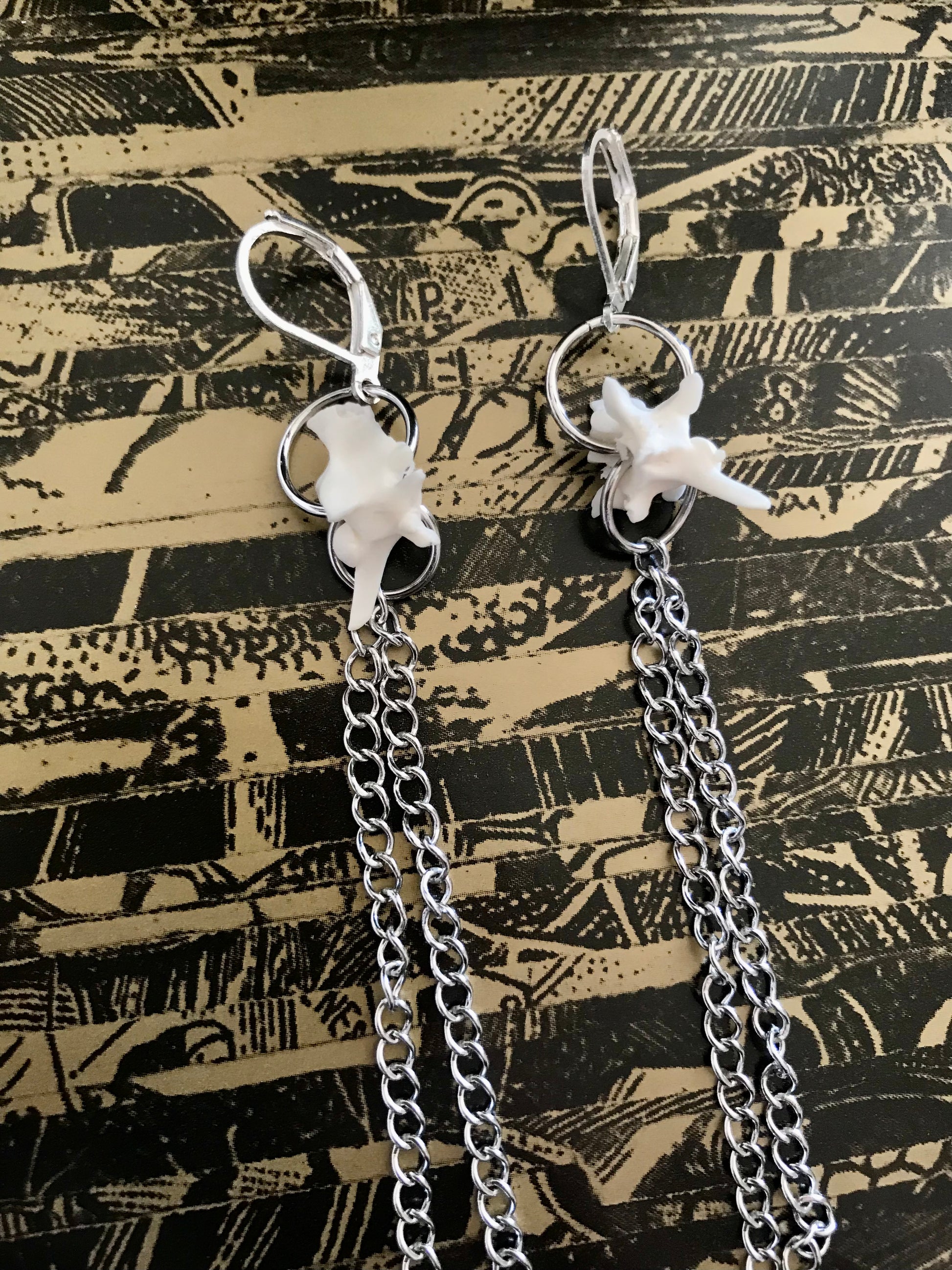 Silvertone chain earrings with snake vertebrae. Hangs approx 4.5"