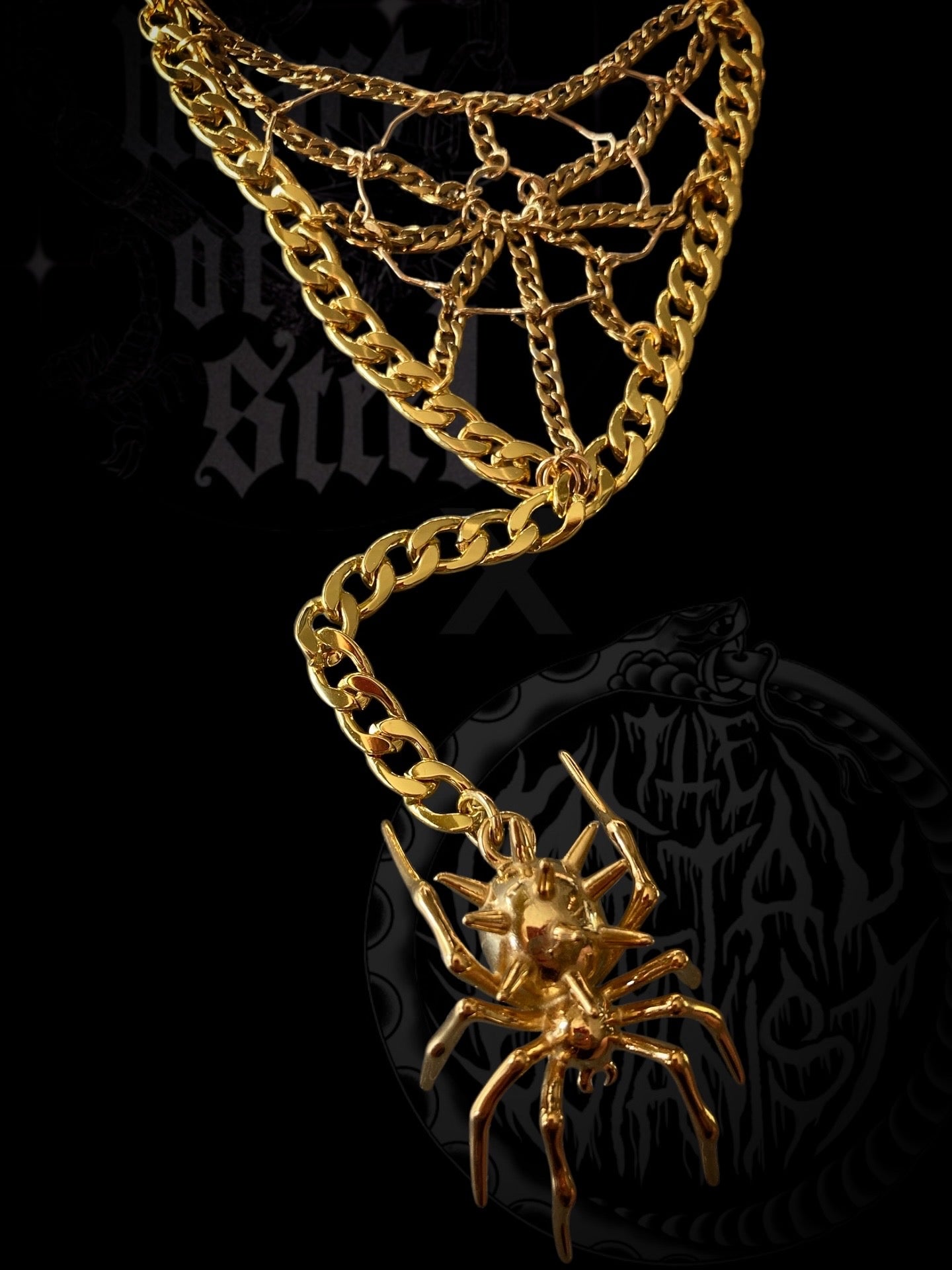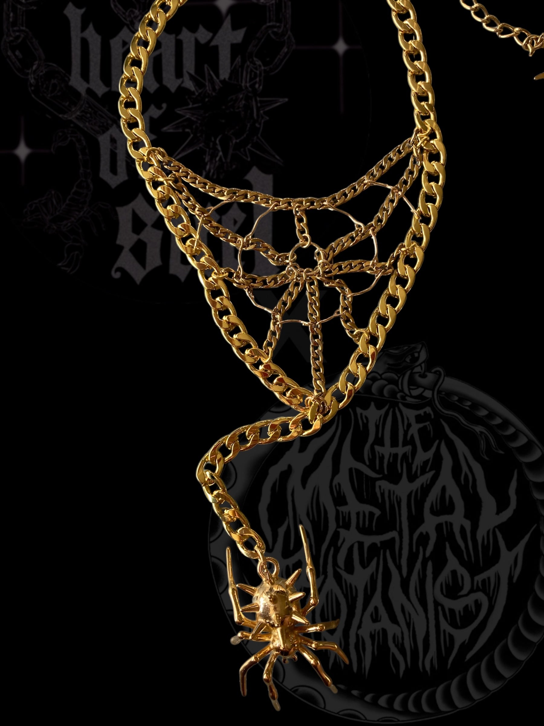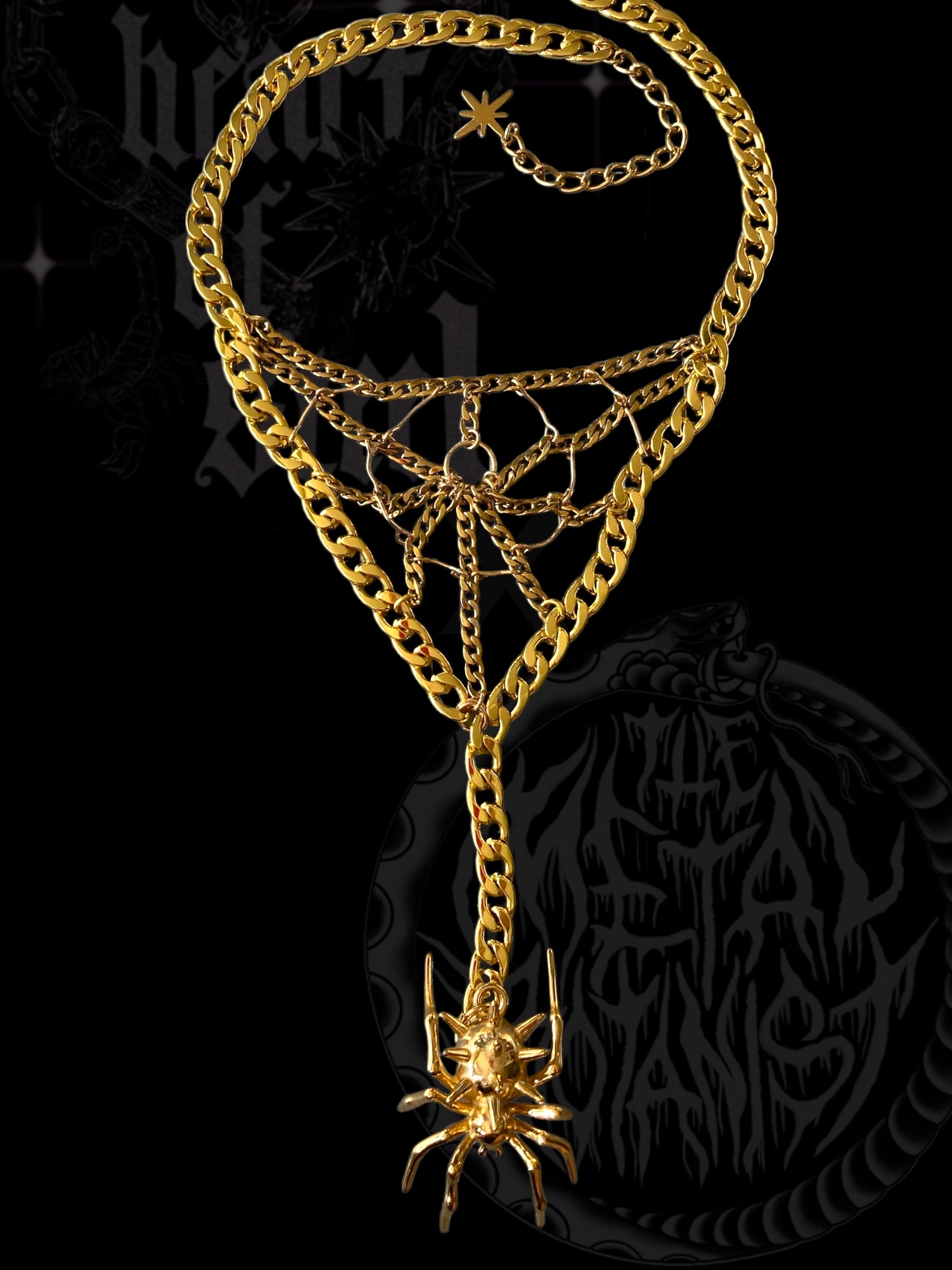 spiderweb lariat necklace in gold plated stainless steel